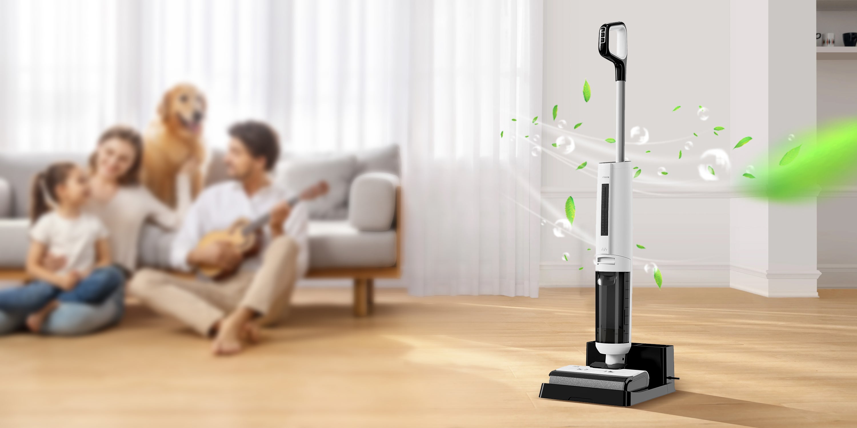 Cordless All-in-One Mop & Vacuum 140°F Hot Air Drying, 180° Lie-Flat, 40Min Runtime, Anti-Wrap Brush, LED Display, 550mL Tanks, 9.15lbs With 18KPa suction and 90% water recovery, it handles pet hair, kitchen spills, and debris like rice grains instantly