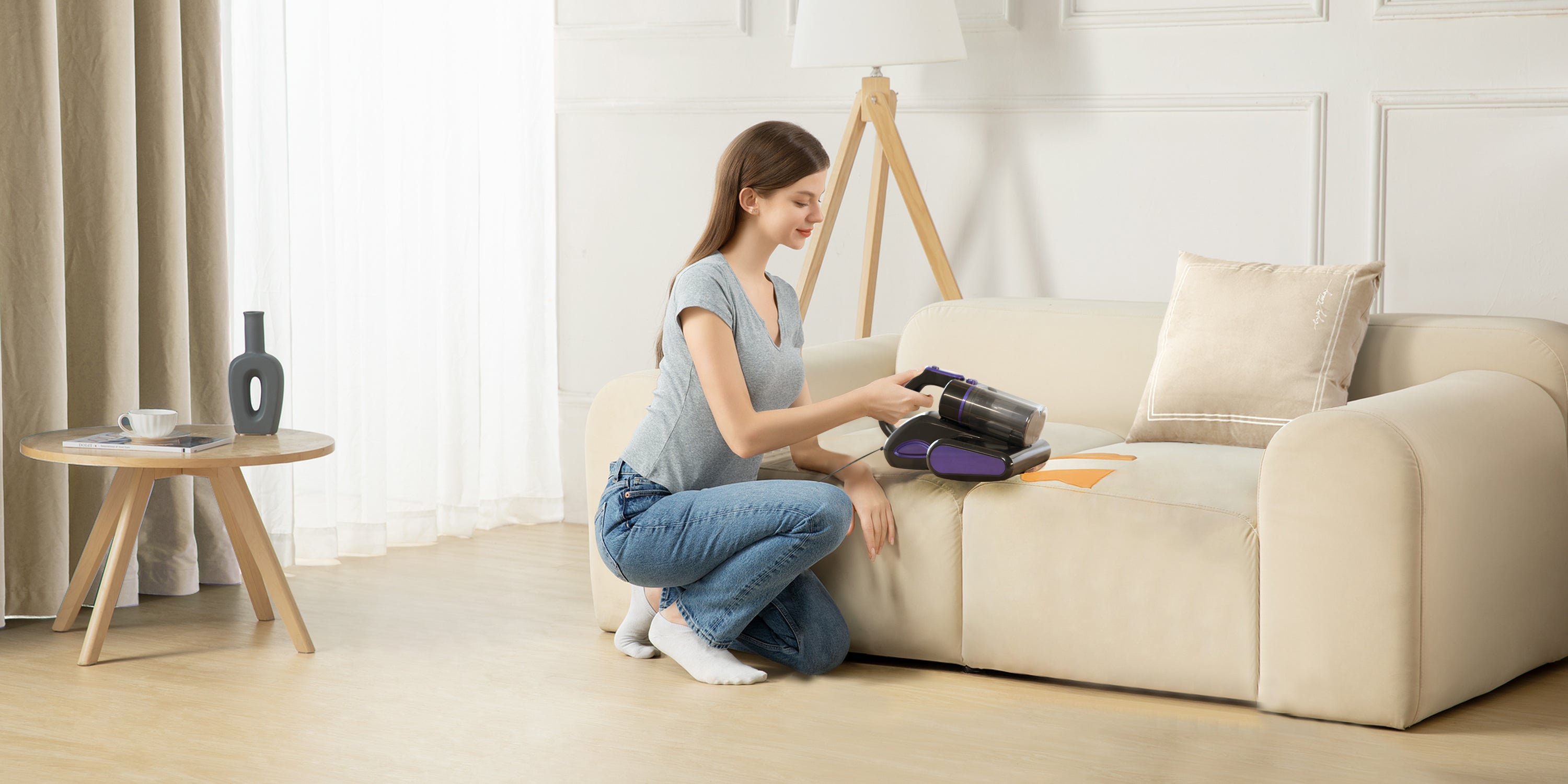 Combines 253.7nm UV-C light, >140°F warm air, and a rotational speed of 35000 RPM to deeply lift dust, pet dander, pet hair, and embedded debris. As a professional bed cleaning tool, it revitalizes mattresses, couches, sofas, and crib upholstery—ideal for households and pet owners in need of thorough furniture cleaning